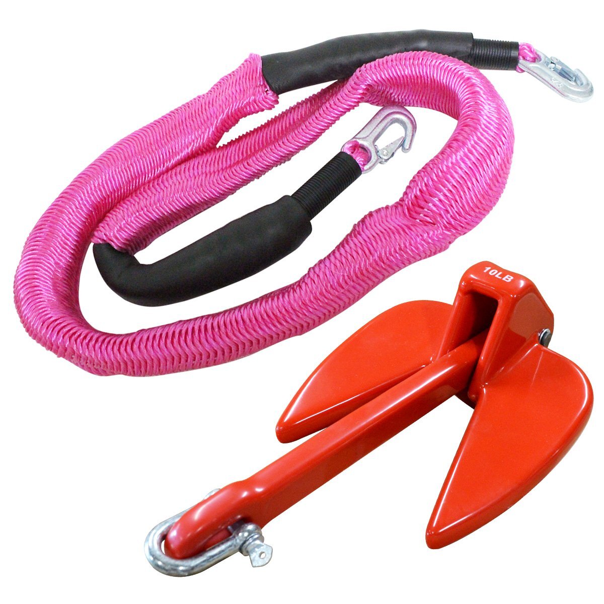 - 『伸縮ロープ/アンカーセット』爪型 アンカー 10LBS 4.5kg 赤 レッド 6M フロート のびのび アンカー ロープ ピンク