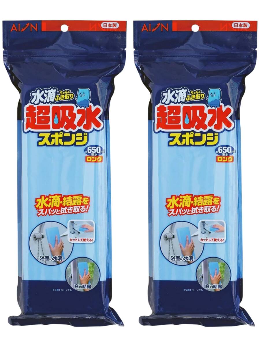 - アイオン 超吸水スポンジ ロングタイプ ブルー 最大吸水量 約650ml 2個セット 日本製 PVA素材 絞ればすぐに元の吸水力復活 結露対策