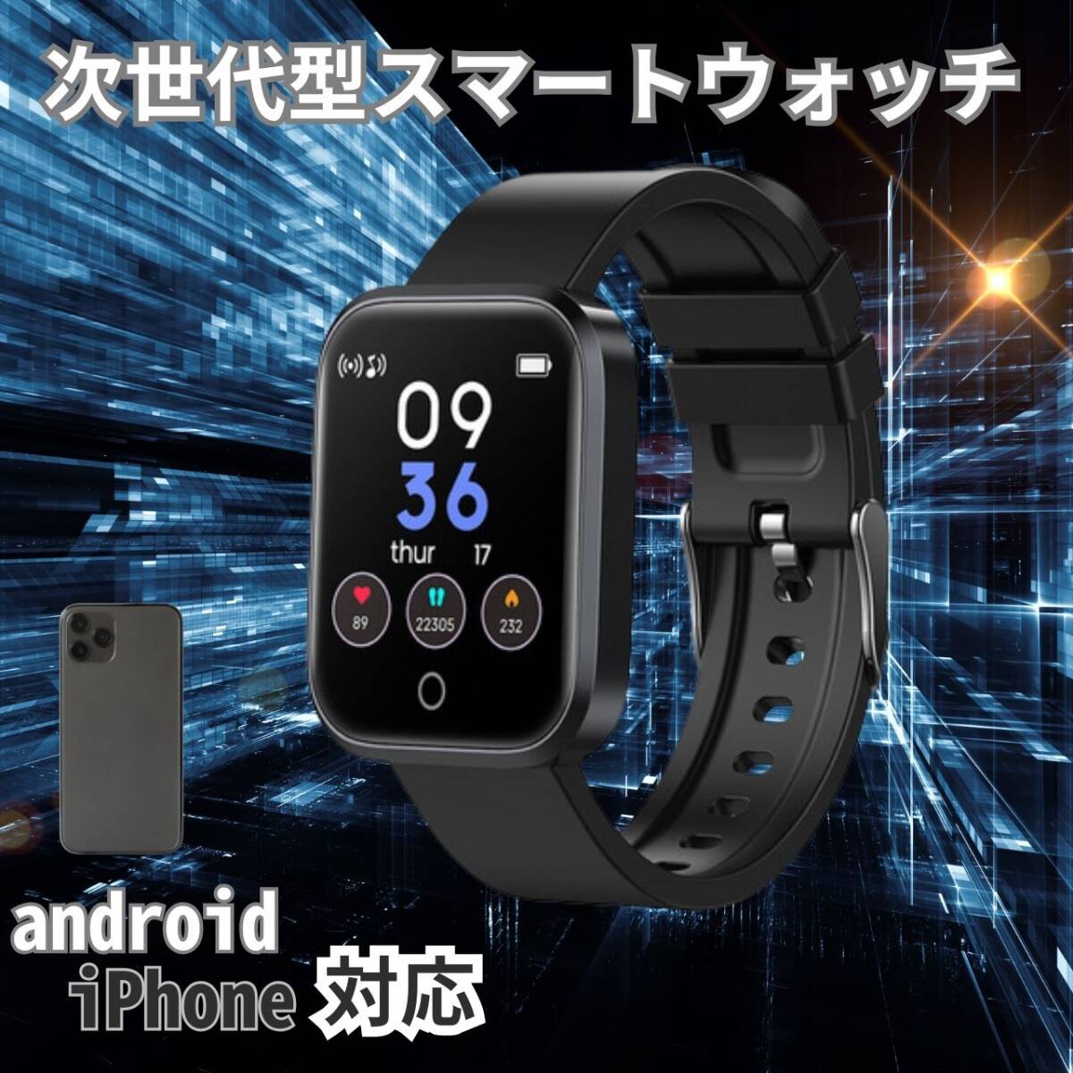 - ブラック iPhone i9スマートウォッチ android 男女兼用