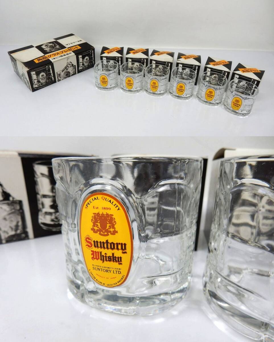 - 【レトロ】SUNTORY サントリー 角瓶グラス 亀甲グラス ロックグラス 6個 未使用 長期保管品 JUNK扱い 現状渡し 一切返品不可で!