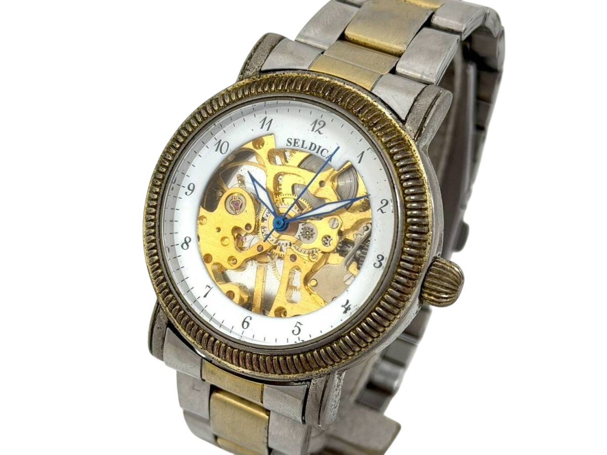 - 11E2イ2S★SELDICA/セルディカ★ 両面スケルトン 手巻き SDC-2039 コンビカラー 腕時計 mens watch