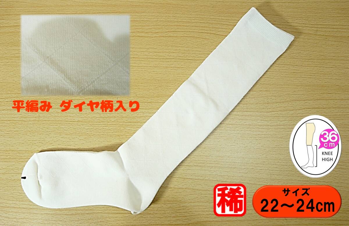 - 【未使用品★レッグウェア】平編み ダイヤ柄入り◆白 ハイソックス◆22-24cm◆36cm丈◆稀少