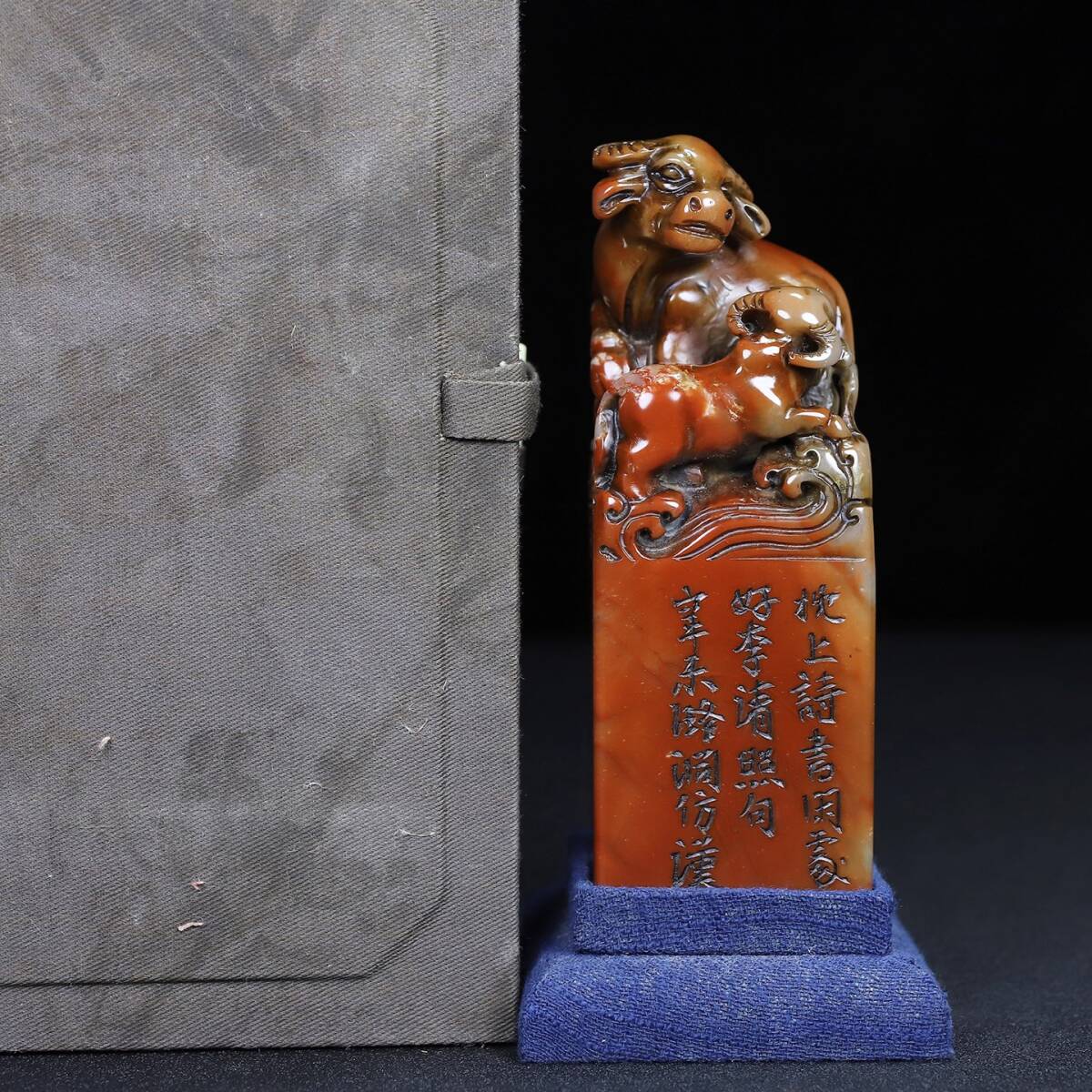 - 旧蔵 寿山石彫 母子牛 印章 文房具 古擺件 古置物 中国古玩 骨董品 時代物 稀少唐物