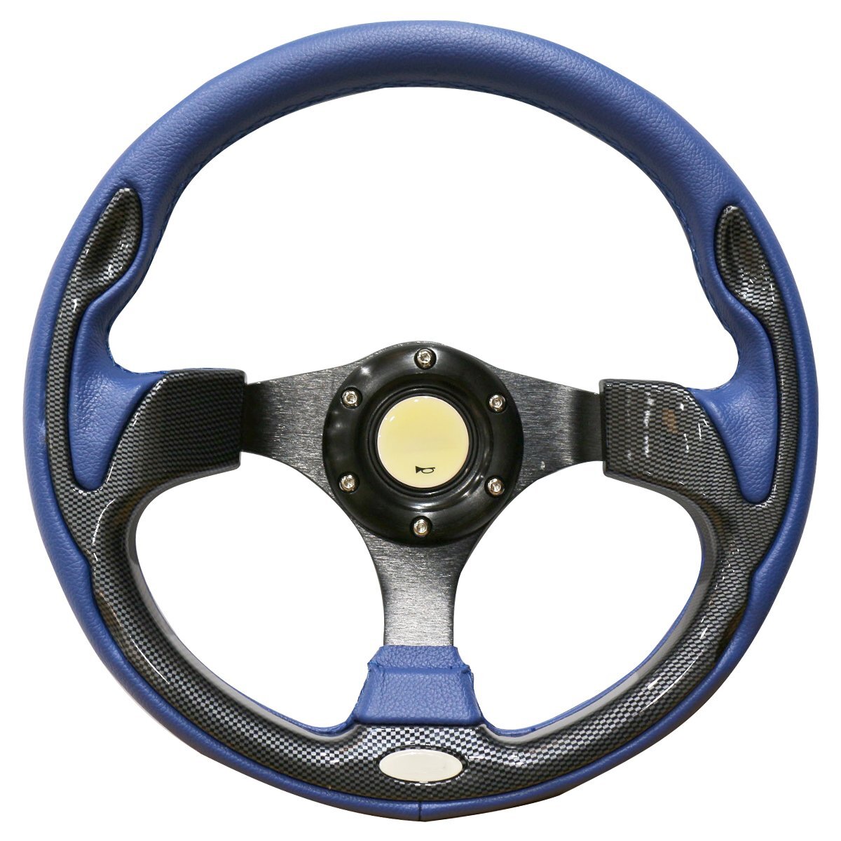 > カーボン調パネル レザー&ステッチ ステアリング 320φ 青 ブルー 320mm 32cm スポーツ ハンドル レーシング 競技用 ドリ車