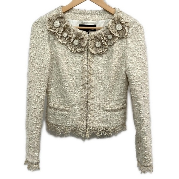 > エポカ EPOCA サイズ38 M - アイボリー×ゴールド×ベージュ レディース 長袖/ツイード/フラワー(花)/ラメ/秋/冬 美品 ジャケット