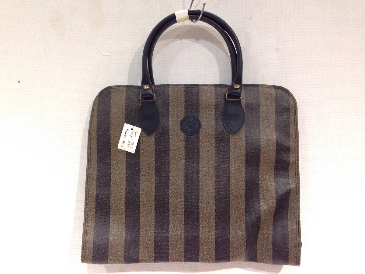 > ●●110●未使用品●バッグ Reirika Mate / レザーバッグ ダークブラウン /トートバッグ ストライプ柄 /シンプル オフィス メンズ 男女兼用