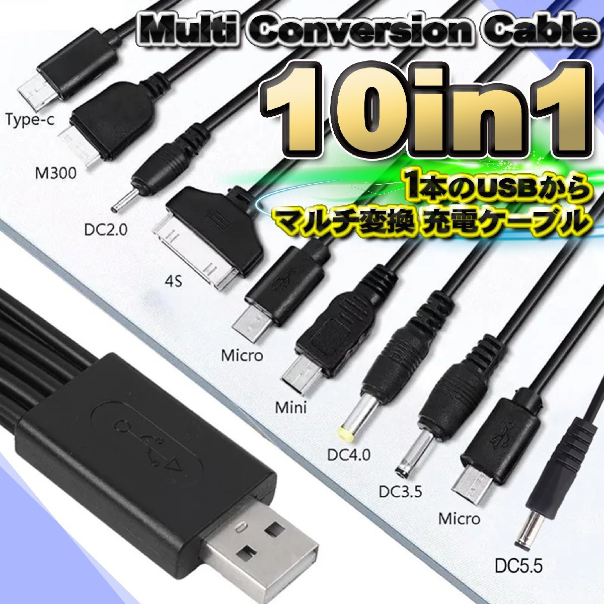 - 色んな機器の充電が出来る 10in1 充電 多機能 マルチ 変換ケーブル Type-c Micro USB Android対応