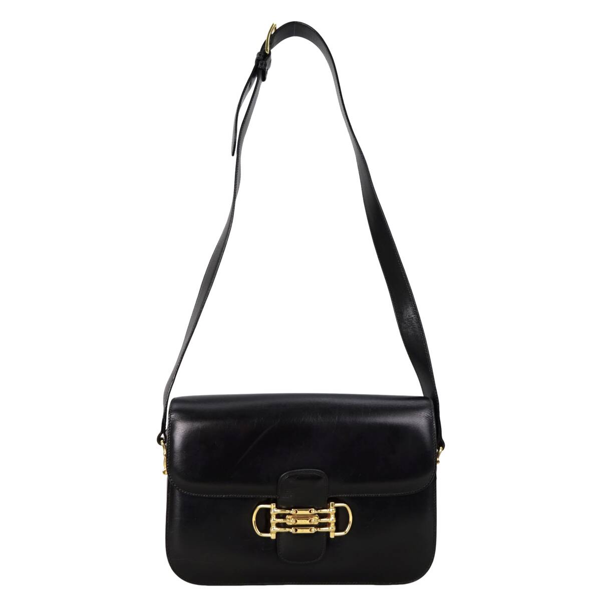 - 本物 良品 ■セリーヌ■ビット バックル ブラック レザー ゴールド ショルダーバッグ