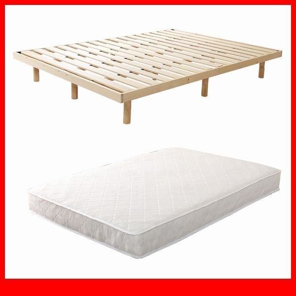 - すのこベッド★ポケットコイルマットレス付き 3段階高さ調節 脚付きすのこベッド/ダブル/コンセント付 北欧産パイン材/ナチュラル/a3