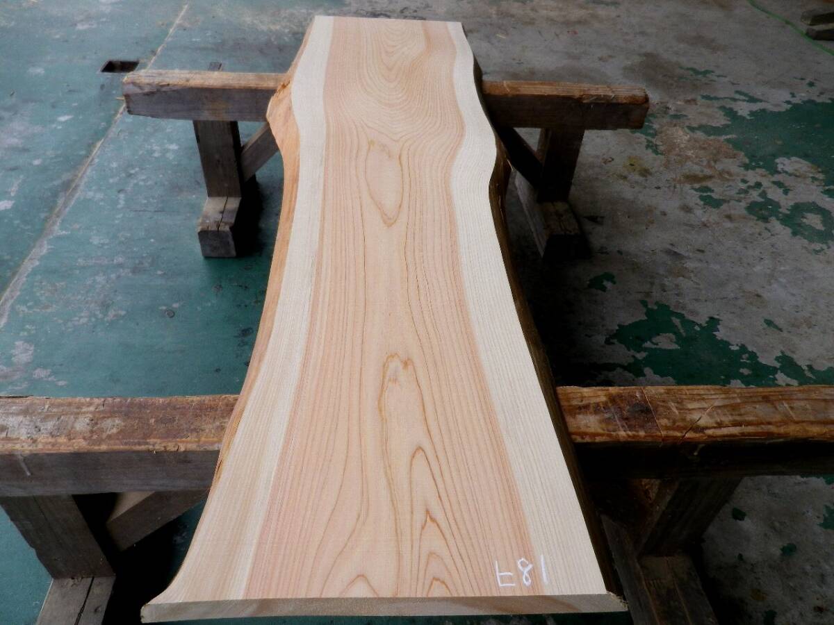 - 長164*幅31-42*厚3.7 桧81の木材木工材,一枚板自然木無垢材DIY テーブル天板 ヒノキ