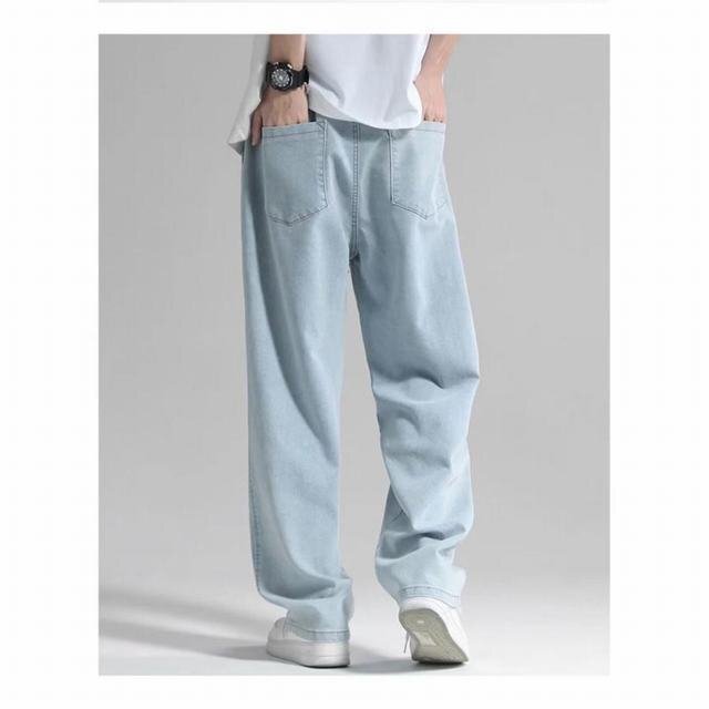 - ジーパン 春夏 通学 学生 大きいサイズ デニムパンツ メンズ ゆったり 韓国ファッション 無地 おしゃれ ライトブルー 2XL