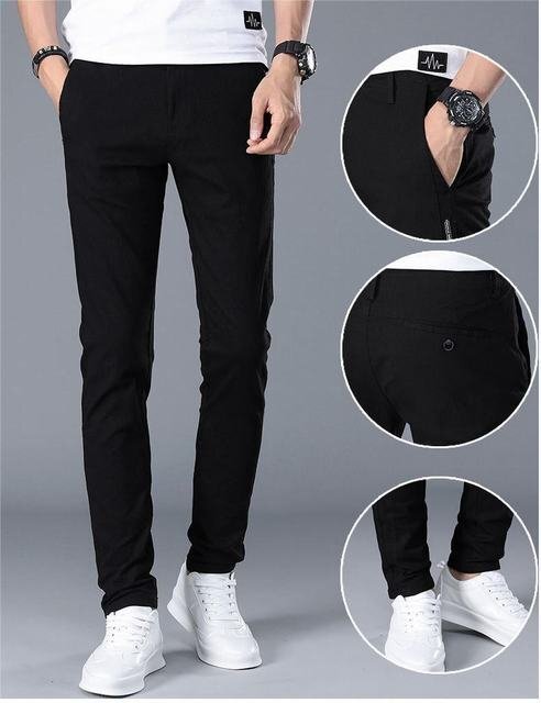 - 春夏 薄手 トレンド メンズチノパンツ アイスシルク レギンスアイスシルク カジュアルパンツ 紳士 ブラック サイズ36