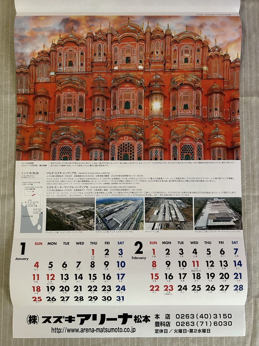 - 2026 令和8年 大きい壁掛けカレンダー スズキ SUZUKI 工場 都市 桜 紙 車 バイク