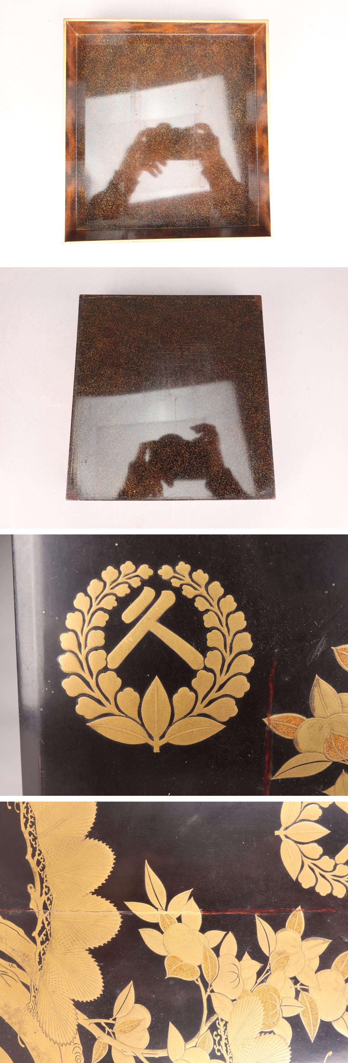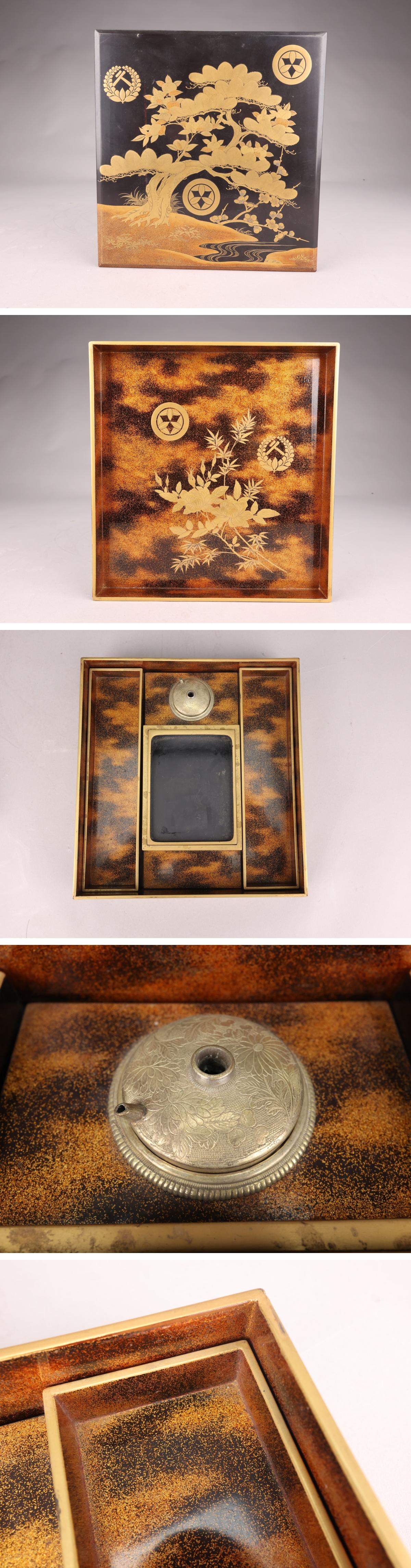 【志】A1378 蒔絵硯箱 松文 家紋 金梨地 書道具 時代物拍卖