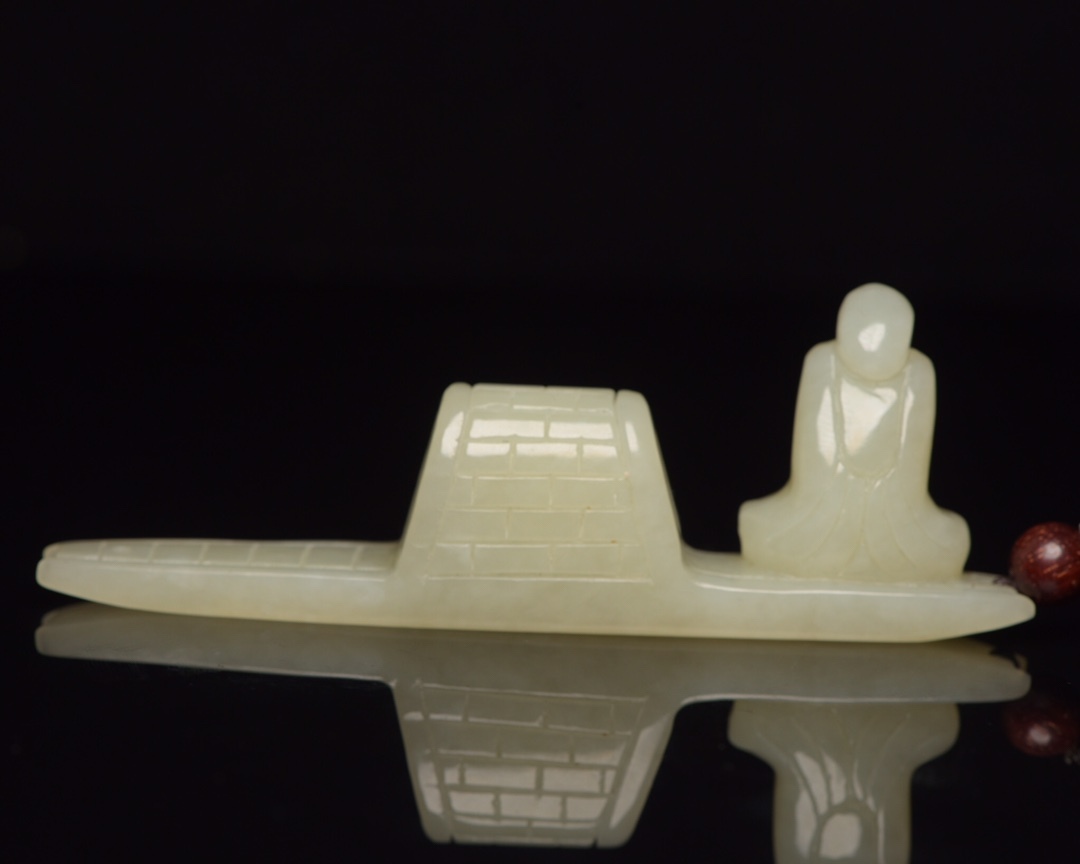 - 旧蔵 和田玉彫 一帆風順 香插 根付 中国古玩 骨董品 時代物 稀少唐物