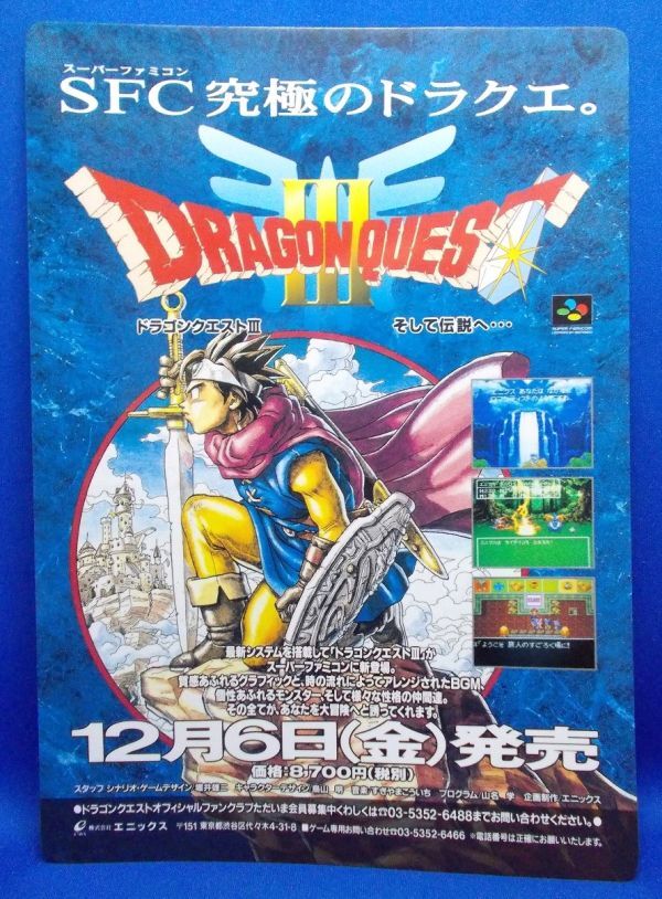 > 非売品 ドラゴンクエストⅢ/ワンダープロジェクトJ2 販促用 下敷き B5判 スーパーファミコン エニックス ドラクエ3 Dragon Warrior III