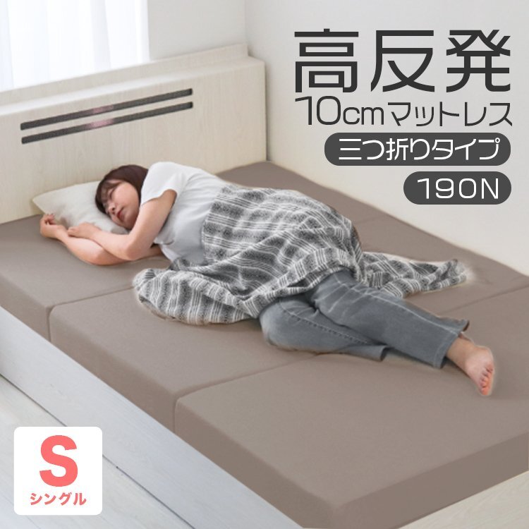 - 【シングル グレージュ】三つ折りマットレス 高反発 190N 極厚10cm 高反発マットレス パイル生地 ベッドマットレス ベッドマット 敷布団