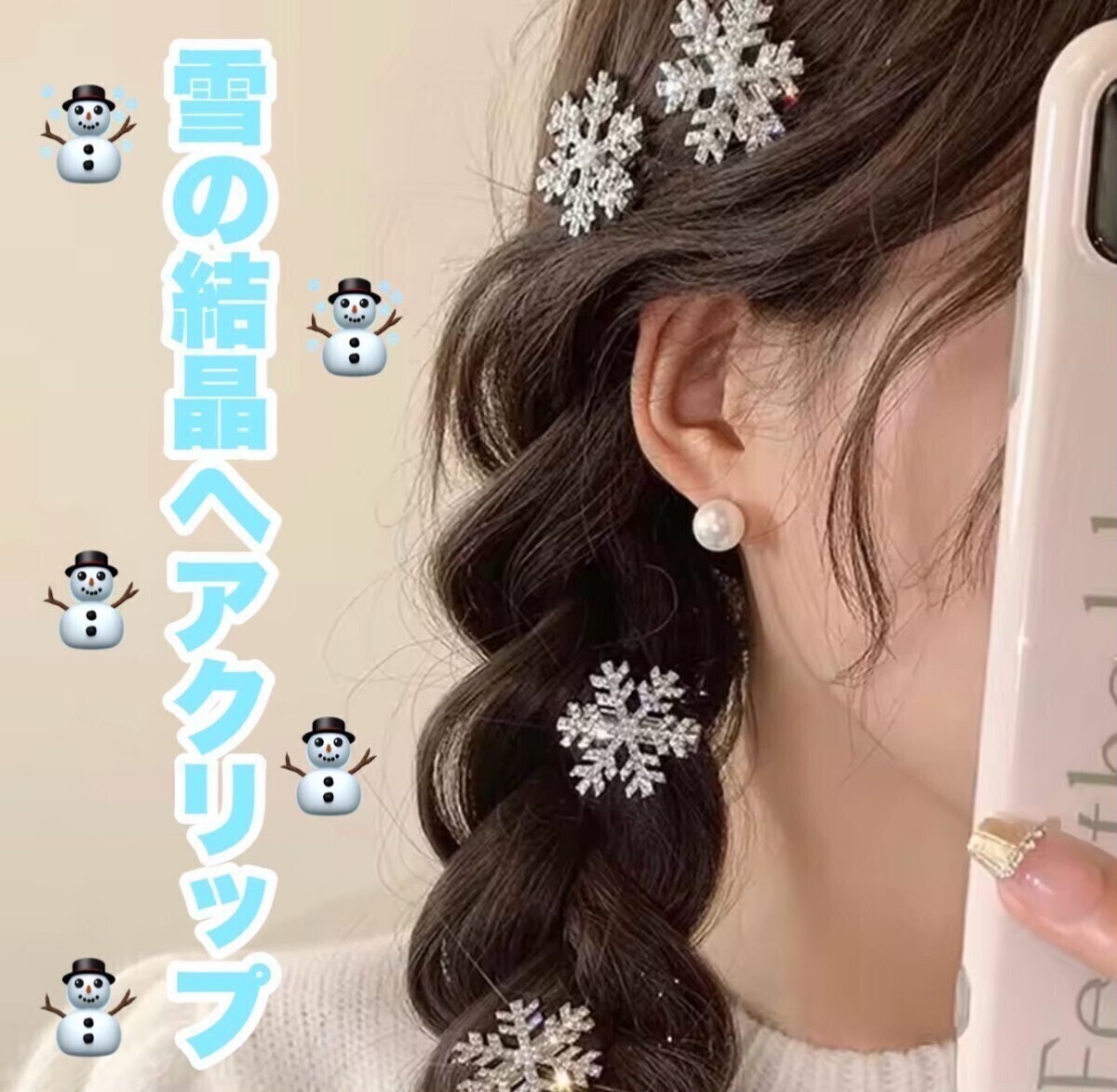 - ヘアクリップ キラキラ 雪花 女の子 アナ雪好き アクセサリー