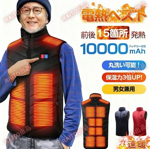 - 電熱ベスト 防寒ベスト バッテリー付き ヒートベスト 15エリア発熱 電熱ウェア インナーベスト 電熱ジャケット 暖かい 保温 加熱服 bhw0105
