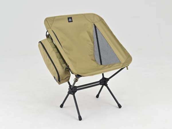 収納袋はカラビナ付きで、チェアのパルステープに取り付ければ便利な小物入れに、持ち運び時はシートバッグやザックの底辺にも装着可能です。