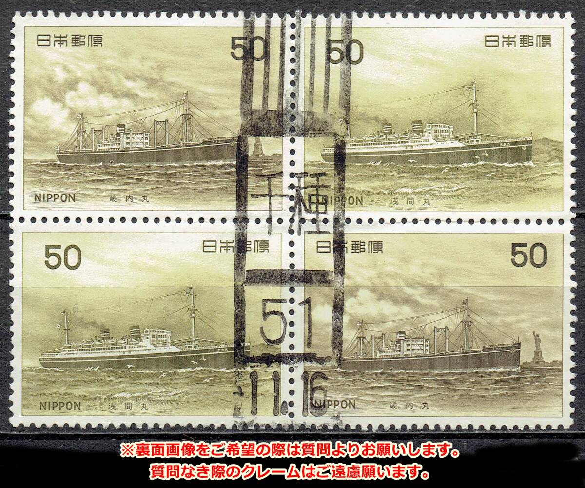 - 【使用済・古い記念切手満月印】船シリーズ5集田型 γ