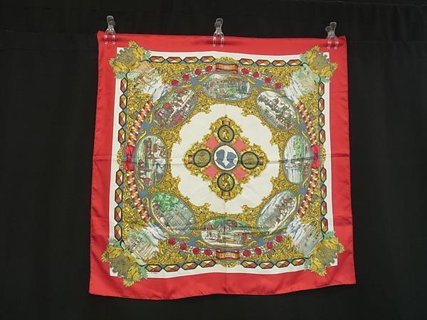- 1円 ■極美品■ HERMES エルメス L’Entente Cordiale 【仏英同盟】 カレ90 シルク100% スカーフ ストール ショール レッド系 FU4692