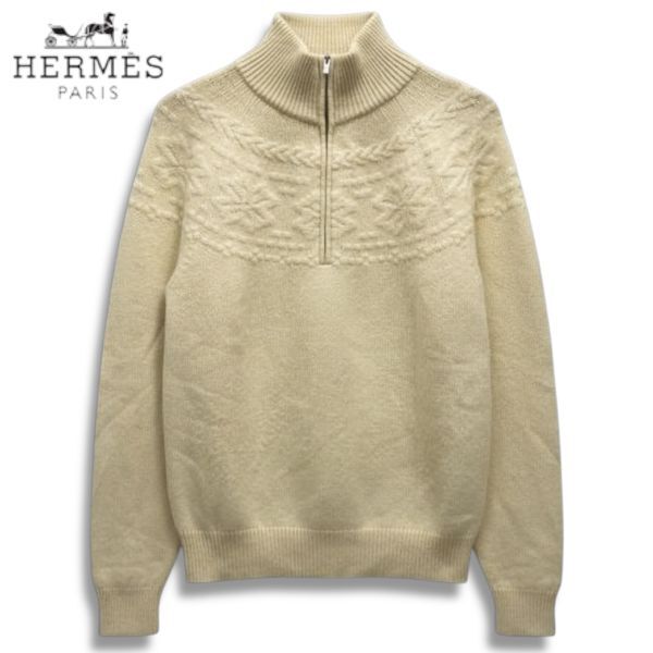 > 1314 正規品 HERMES エルメス H/Zip cashmere knit sweater カシミヤ 100% ハーフジップ ニット セーター ノルディック柄 イタリア製