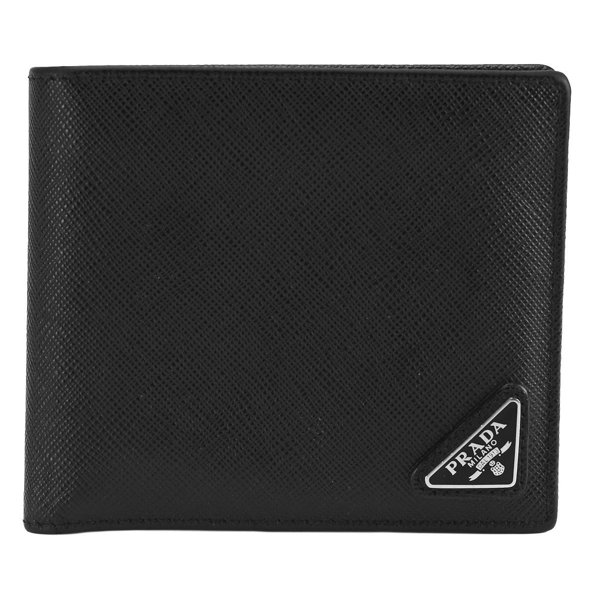 > プラダ PRADA トライアングルロゴ 二つ折り 財布 メンズ サフィアーノ レザー シルバー金具 ブラック 2M0738 中古