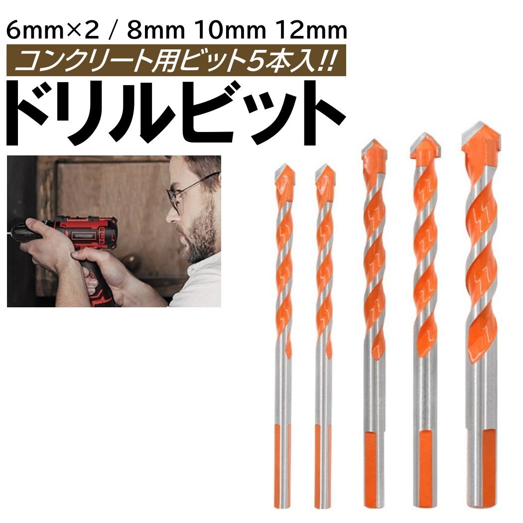 - 5本入 コンクリートドリル ビット 6mm/8mm/10mm/12mm ドリルセット コンクリ ドリル 電動 ドリル用 コンクリート