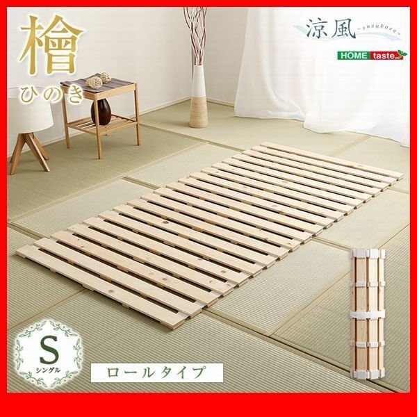 - すのこベッド★すのこベッド ロール式 檜仕様 シングル/天然木 日本産檜/湿気 結露 対策 コンパクト収納/ナチュラル/zz