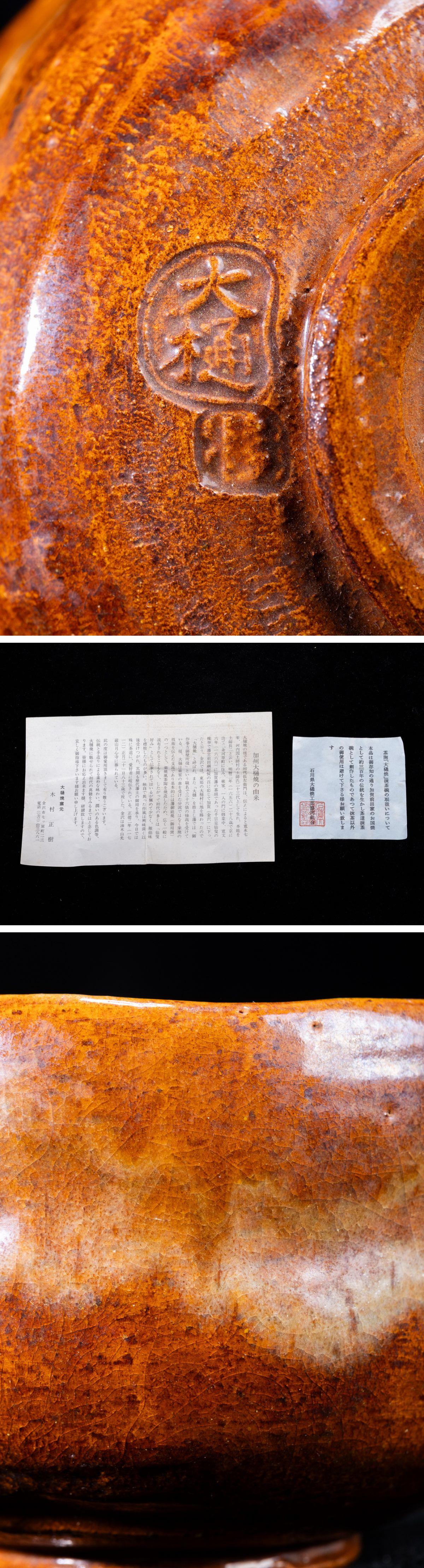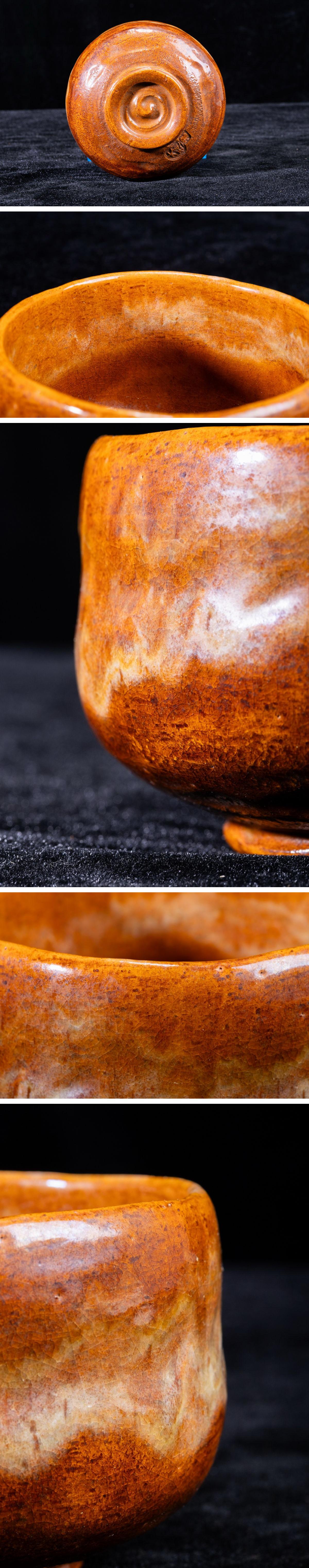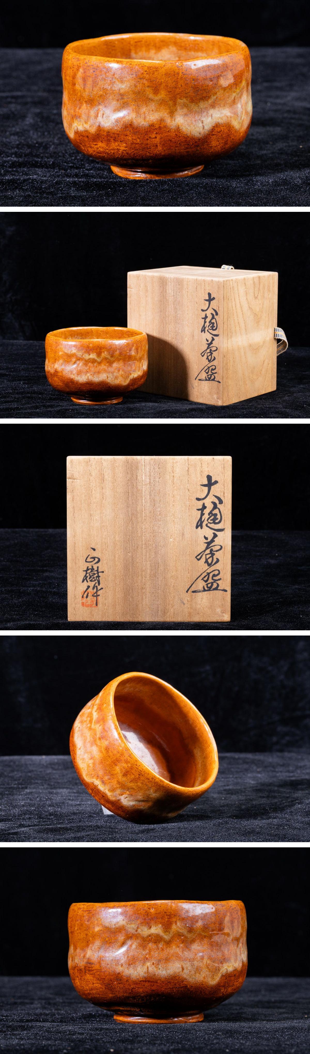 > 【珍品堂】1円から N64-V2 大通焼 飴釉 木村正樹 作 在銘 高8㎝ 共箱 木箱 抹茶碗 抹茶碗 茶道具 お椀 和食器 時代物 工芸品 骨董品