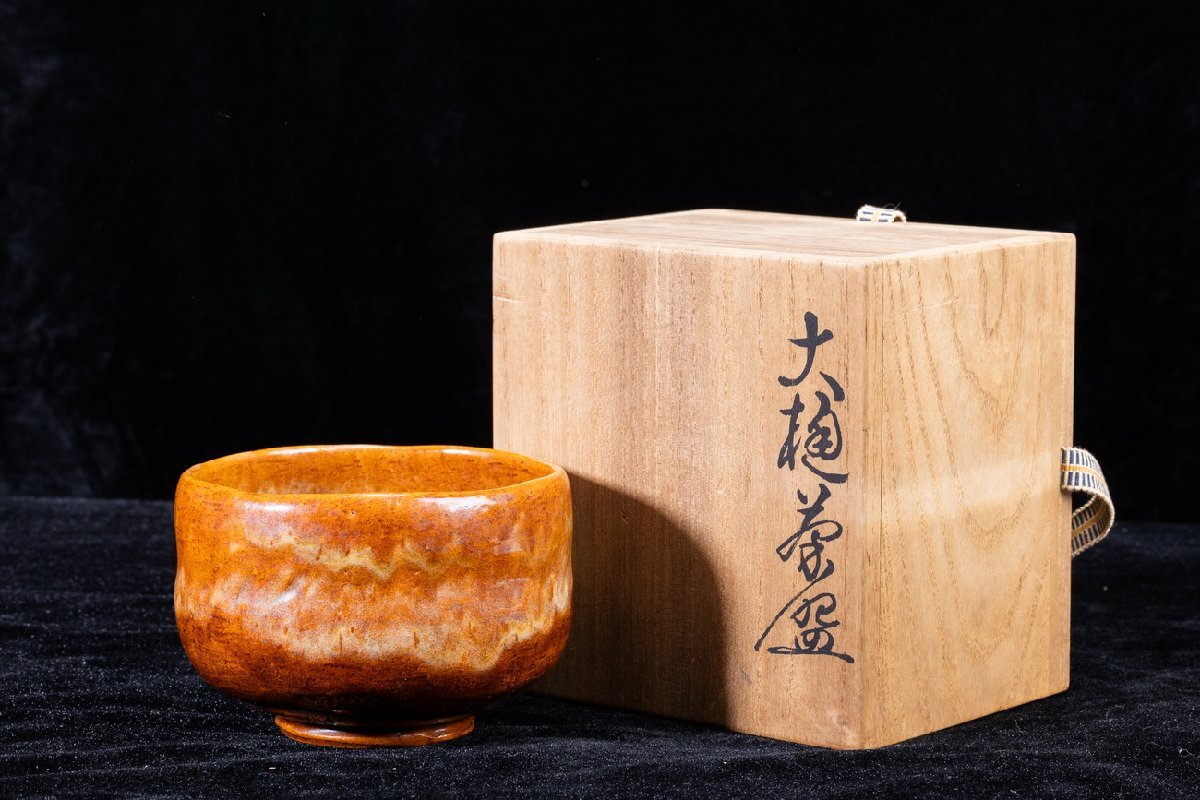 - 【珍品堂】1円から N64-V2 大通焼 飴釉 木村正樹 作 在銘 高8㎝ 共箱 木箱 抹茶碗 抹茶碗 茶道具 お椀 和食器 時代物 工芸品 骨董品