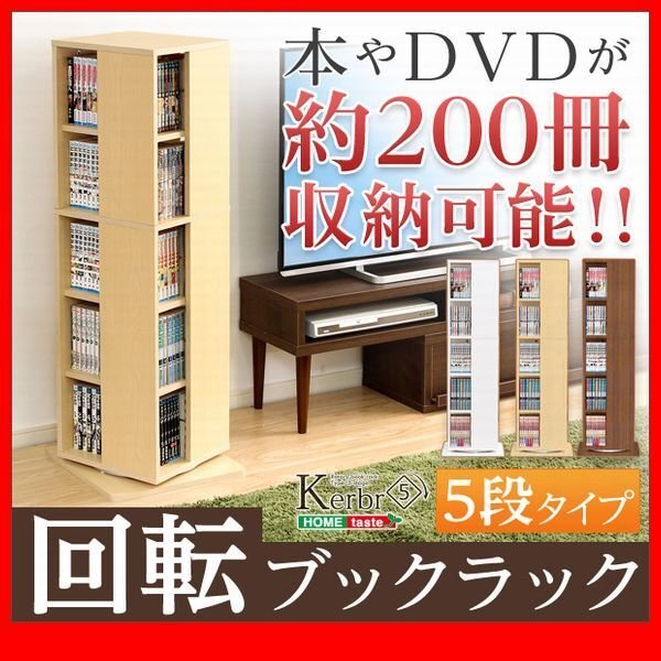 - 本棚★回転ブックラック 5段/コンパクト 省スペース 39x39cm/大容量 収納 本 200冊 DVD 200枚 CD 280枚/ナチュラル ウォールナット 白/zz