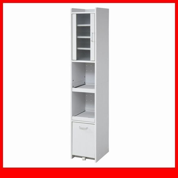 - キッチン家電収納庫★キッチンすきま収納 H180cm 扉あり/ミニ食器棚 コンパクト スリム ラック 棚 キッチンラック/ホワイト/特価 限定/a1