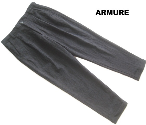 - 美品日本製!!アルミュール ARMURE*美シルエット ドローコード入り ストレッチポリコットンテーパードイージーパンツ 2 実寸M ダークグレー