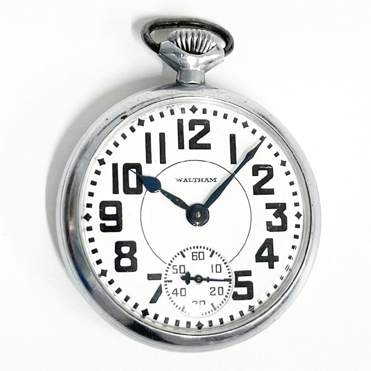 > 【1円スタート】【訳あり品】WALTHAM ウォルサム スモセコ SS ホワイト文字盤 手巻き 懐中時計 515098