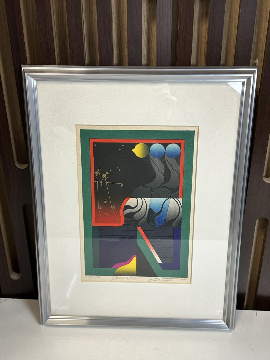 - Y11031 黒崎彰 星座シリーズ 双子座 79/100 直筆サイン 木版画 抽象画 額装