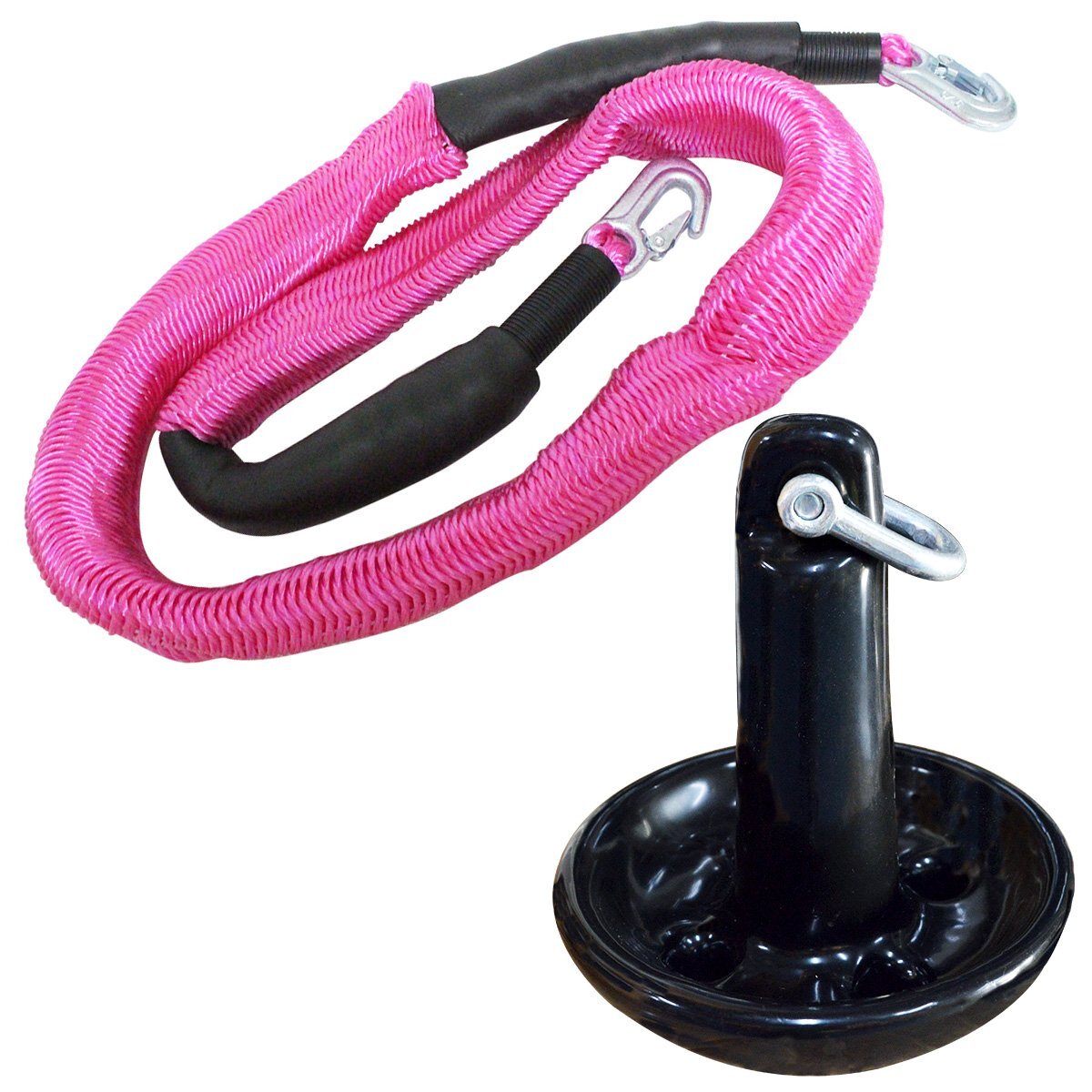 - 『伸縮ロープ/アンカーセット』マッシュルームアンカー 10LBS 4.5kg ブラック 6M フロート のびのび アンカー ロープ ピンク