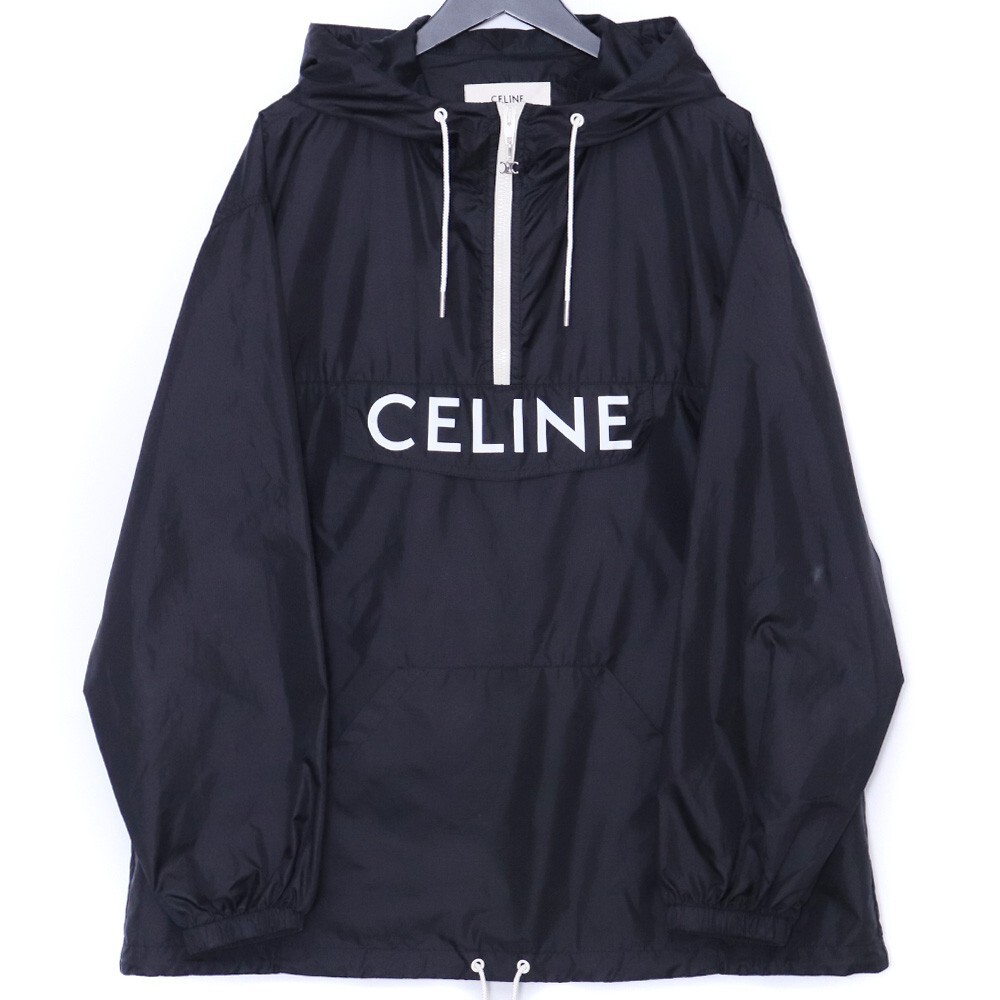 > CELINE ナイロンウインドブレーカーアノラックジャケット サイズ50 ブラック 2W531495M セリーヌ パーカー ロゴ WINDBREAKER