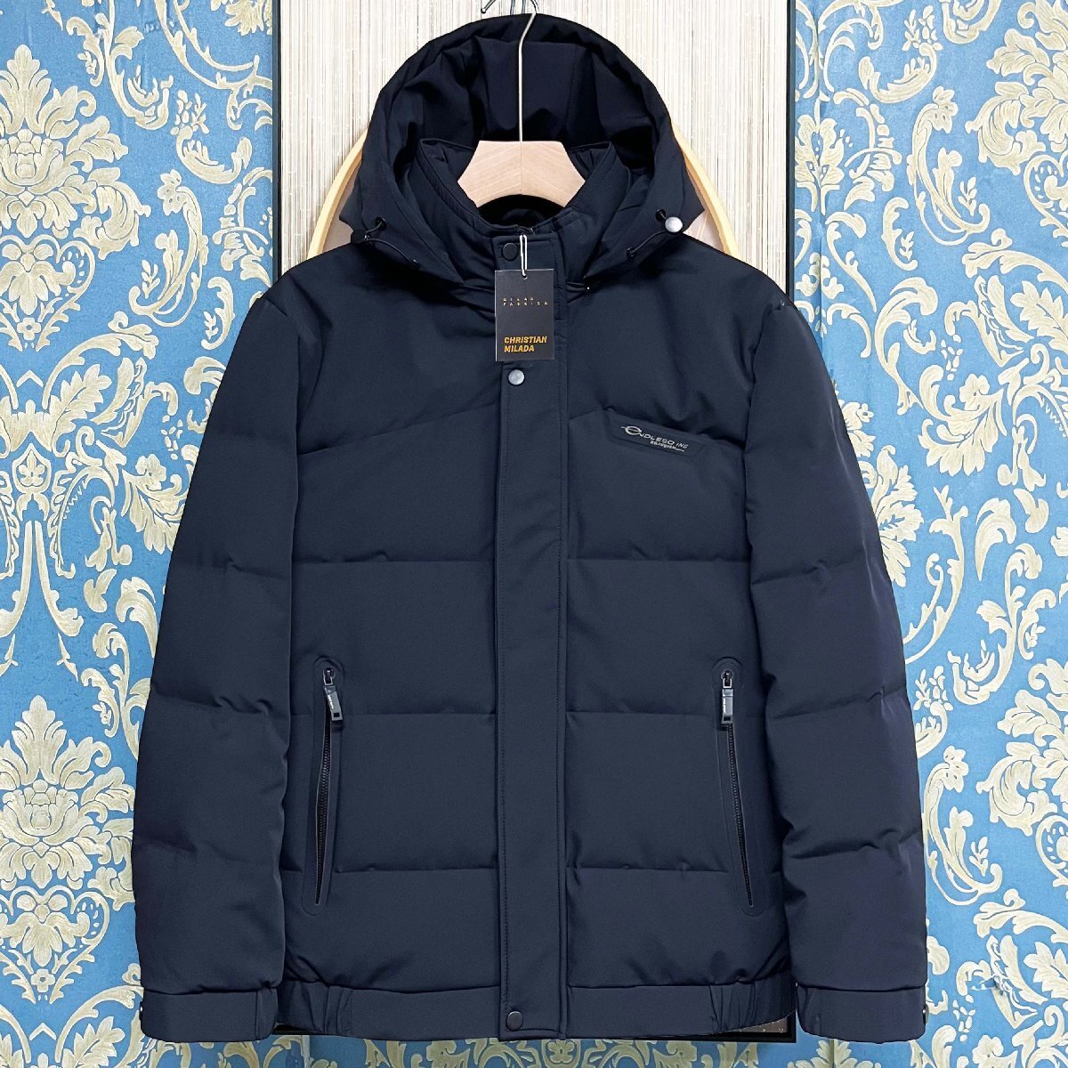 - 定価11万★christian milada・ミラノ発・ダウンジャケット★ダックダウン90% 防寒 ソフト フード付き アウター ブルゾン コート 冬用 L/48
