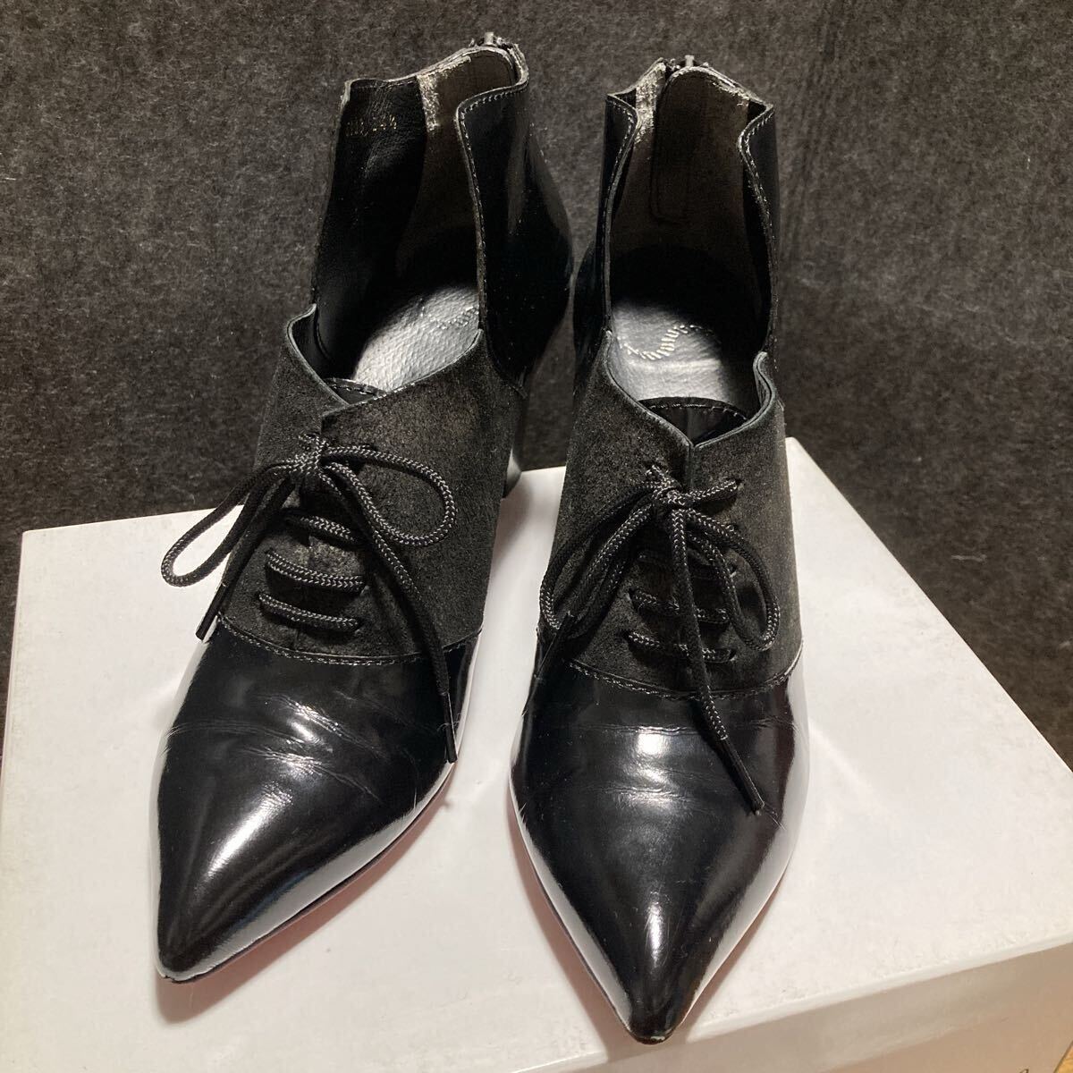 > インディビジュアル パテントレザー レースアップ ブーティ パンプス ラボキゴシ ワークス works 本革 アーモンドトゥ ポインテッド 24.5靴