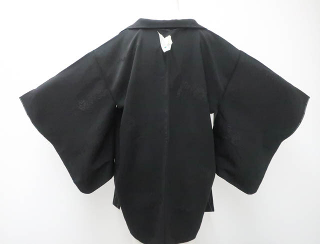 > 《古美術京松》リサイクル着物 羽織 黒羽織 一つ紋 花 羽織紐別売 正絹 身丈約83.5cm 裄丈約64.5cm kyo7z09-1091