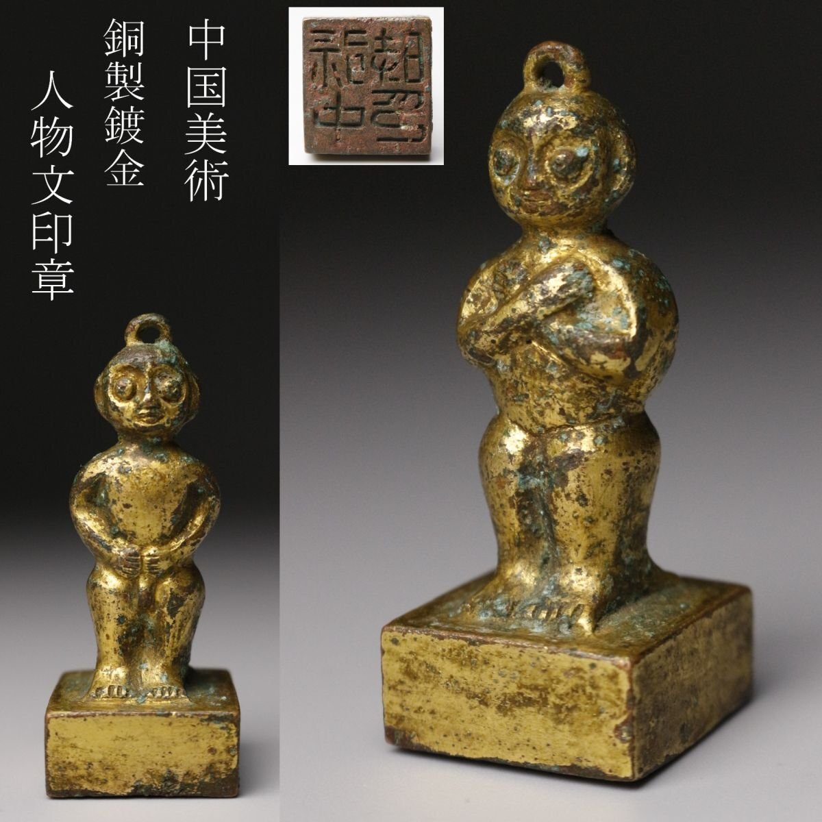 【LIG】中国美術 銅製鍍金 人物文印章 印鑑 書道具 時代古玩 [.WW]25.9拍卖