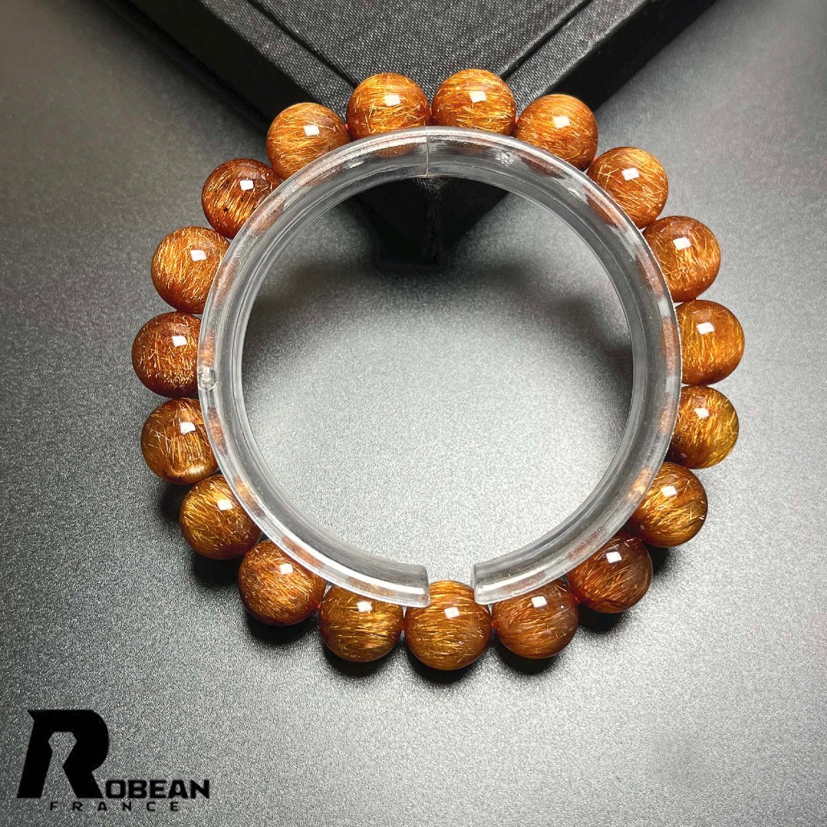 > 夢色 EU製 定価149万円★ROBEAN・猫目レッド銅髪ルチルクォーツ★ブレスレット パワーストーン 天然石 金運 お守り 10.7-11.1mm D1011685