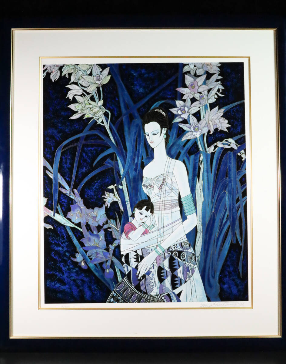 > ◇雅◇ 真作保証 丁紹光 ティン・シャオカン 「花影の母子像」 シルクスクリーン エディション 9/300 直筆サイン 額装 /RG.25.11 [C147] OT