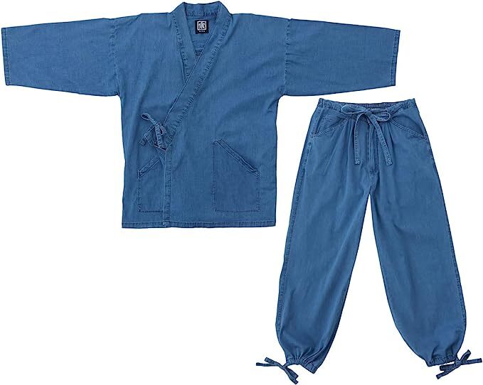 - 作務衣 【結】ソフトストレッチデニム 上下セット 通年向け Mサイズ