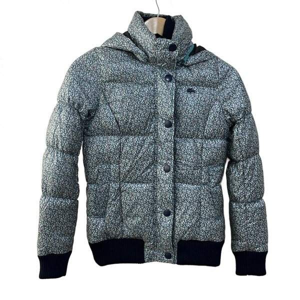 - ラコステ Lacoste ダウンジャケット サイズ38 M - グリーン×ネイビー×マルチ レディース 長袖/花柄/冬 ジャケット