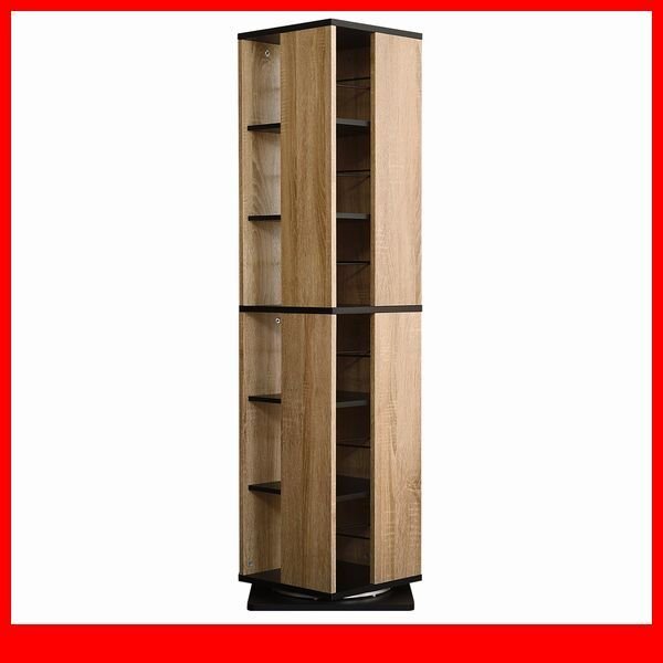 - 本棚★回転ブックラック 6段/コンパクト 省スペース 39x39cm/大容量 収納 本 240冊 DVD 240枚 CD 336枚/木目調 シャビーオーク/特価/a1