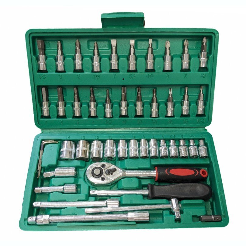 - 【vaps_2】ソケットレンチセット 46点セット 差込角6.3(1/4インチ) バイク 自転車 スリーブ ラチェットレンチ ドライバー ツール 修理 送込