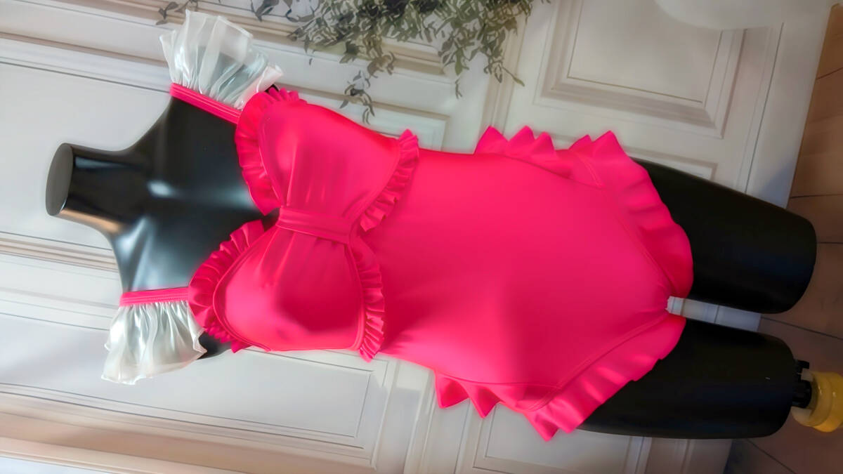 - 匿名配送♪未使用品♪12Y(150cm)♪ふりふりフリルがキュート♪鮮やかなレッドのワンピース水着☆彡